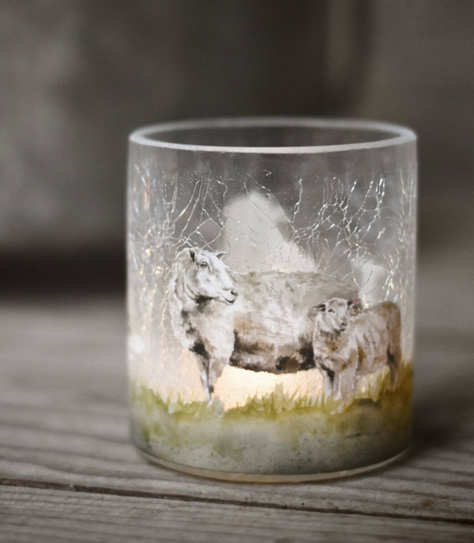Lekkert lysglass med motiv av sau. Kun i str 9×10