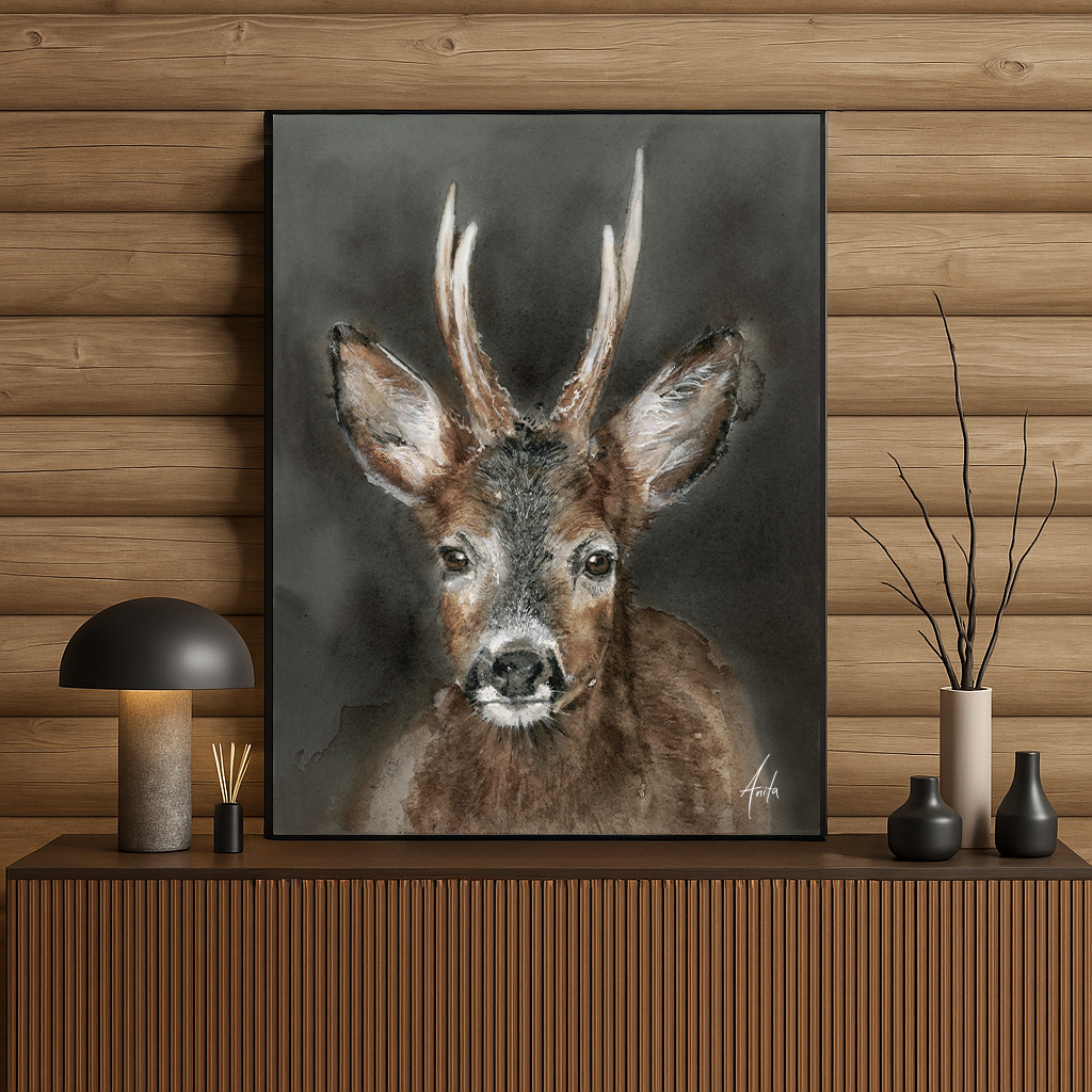 Kunstplakat av motiv “rådyr”, 50×70.