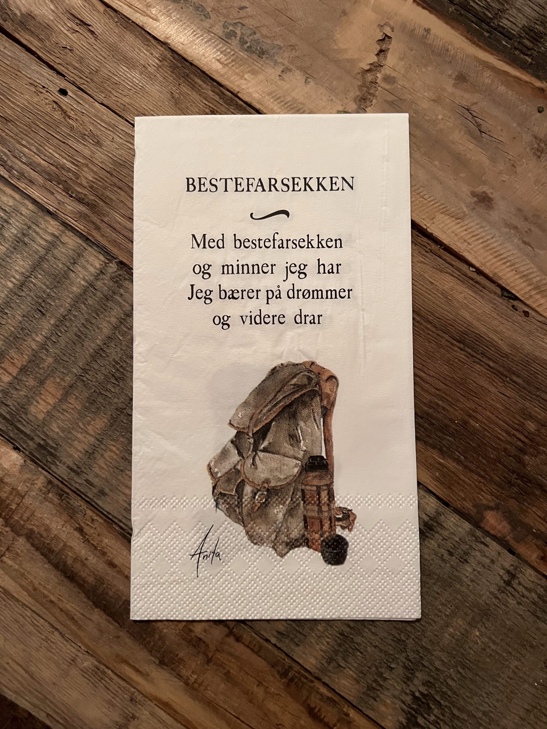 Koselige nostalgiske servietter med dikt av min far, Karsten Rasmussen.